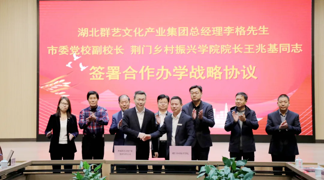 荊門黨校(鄉(xiāng)村振興學(xué)院)與湖北群藝集團(tuán)舉辦合作辦學(xué)簽約儀式,共同舉辦積分制管理特色培訓(xùn)班